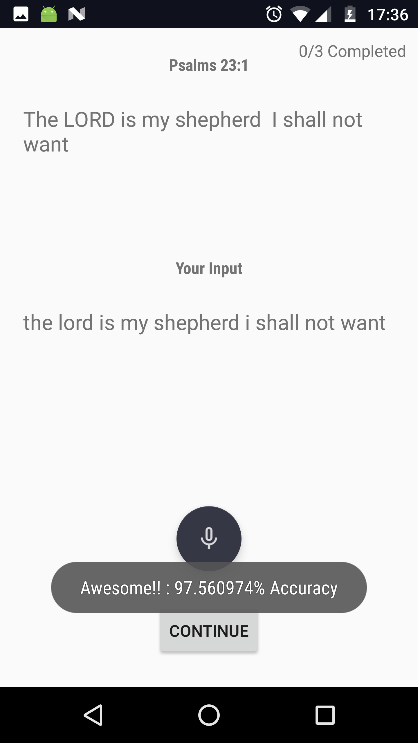 GirdThySword makes use of speech recognition in order to evaluate how well you have memorized a certain section of the Bible. A King James Bible is also integrated as a part of the app which distinguishes the verses that are memorized or added for memorizing from those that are not.