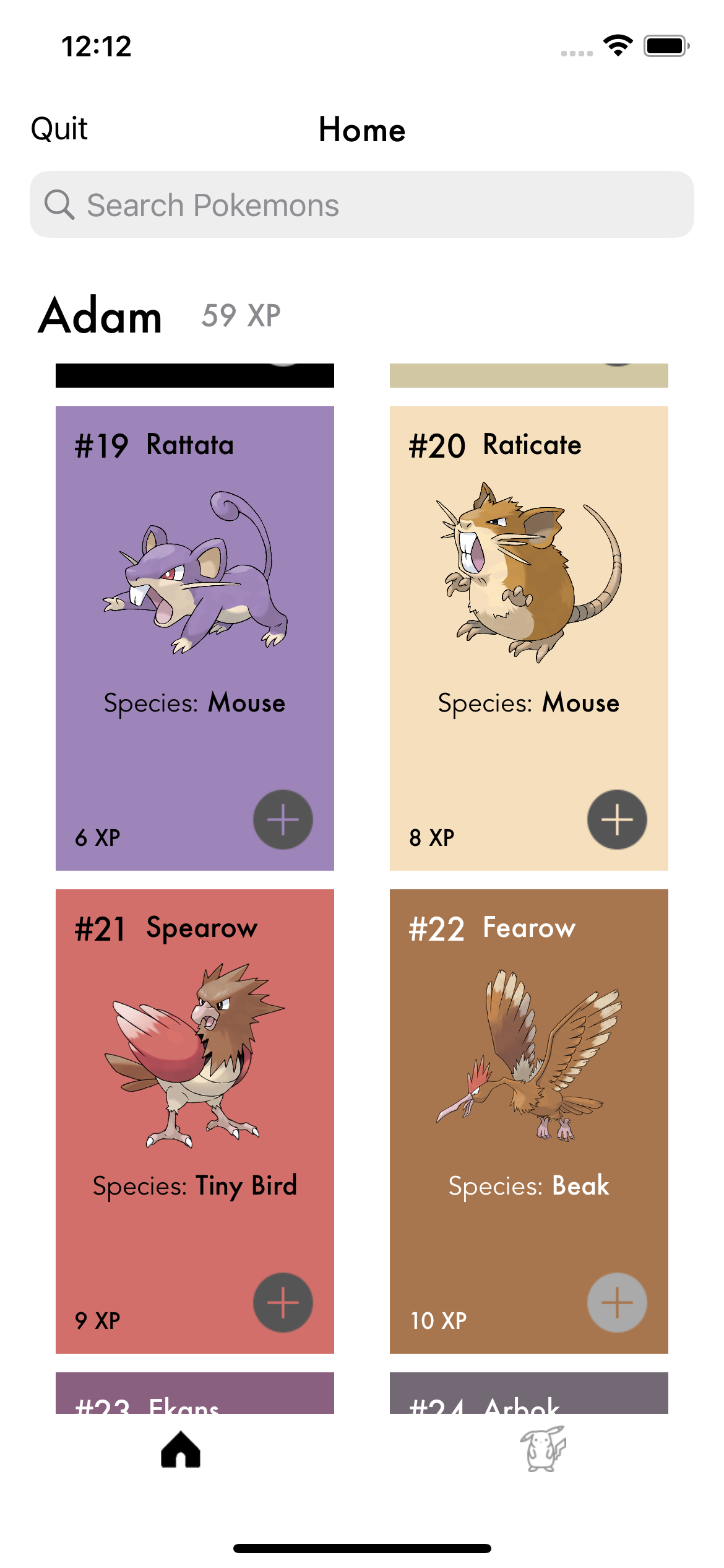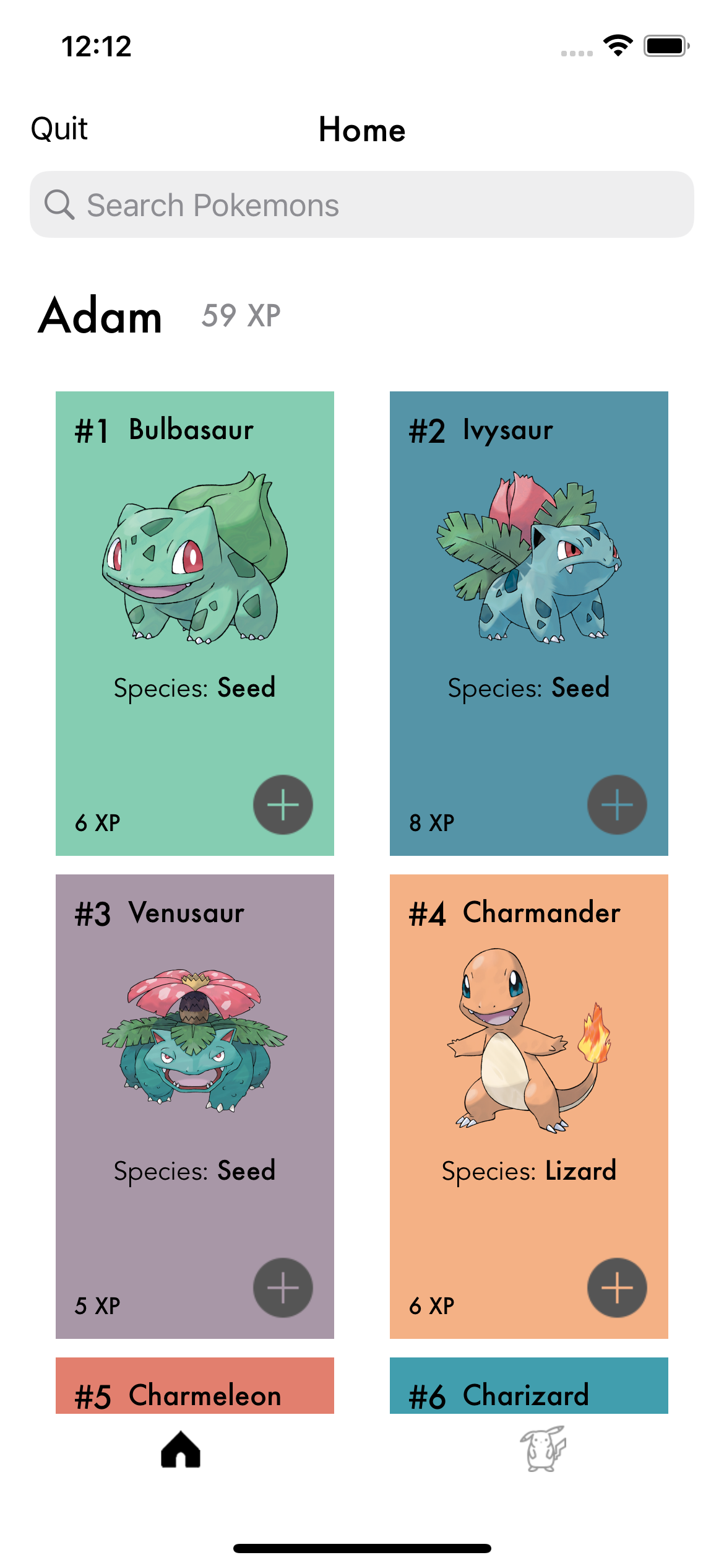 After login, the home screen lists all the 150 Pokemons with some basic information on each of the cards. Each card is uniquely colored based on the primary color that is present in the Pokemon’s image. To achieve this I’ve used the dependencies https://cocoapods.org/pods/UIImageColors and https://cocoapods.org/pods/Hue.