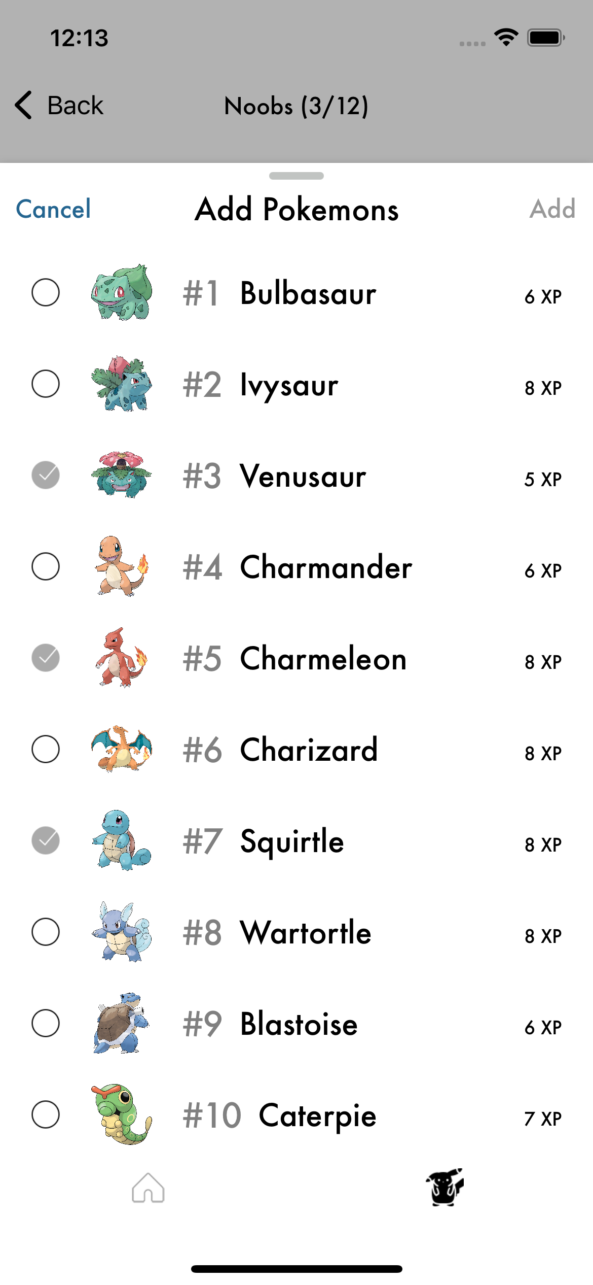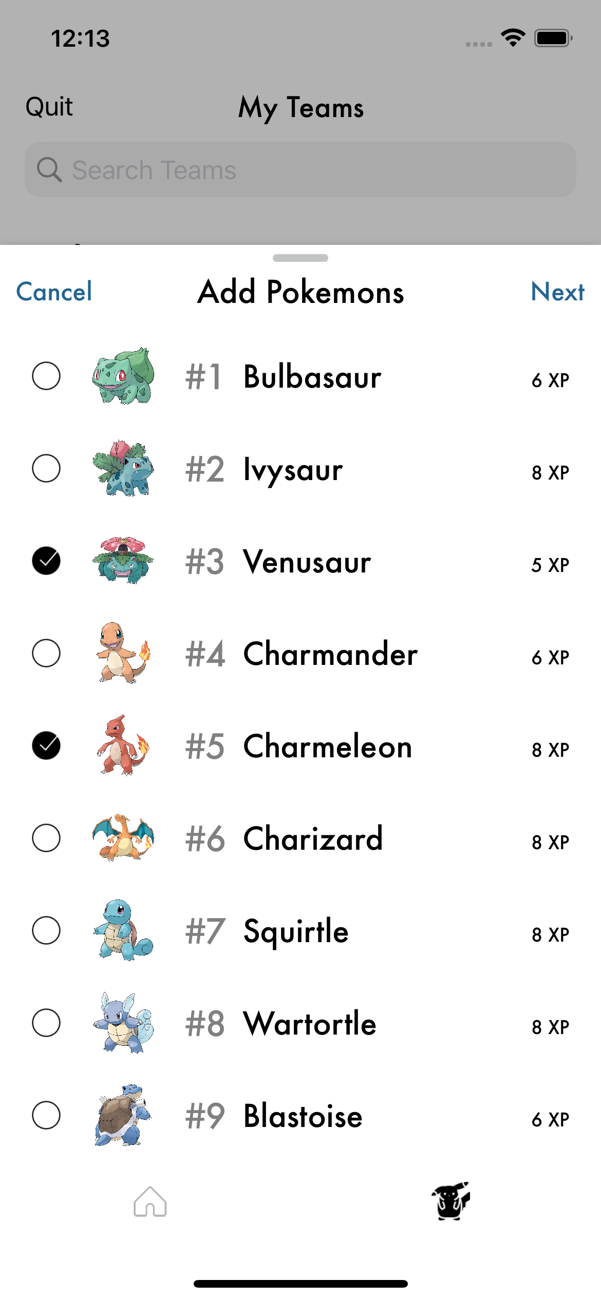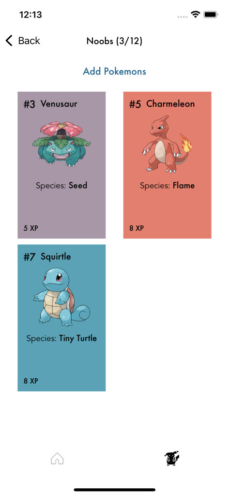Finally, coming to the feature that allows users to play, the user can create teams with a maximum of 12 Pokemons in each team.